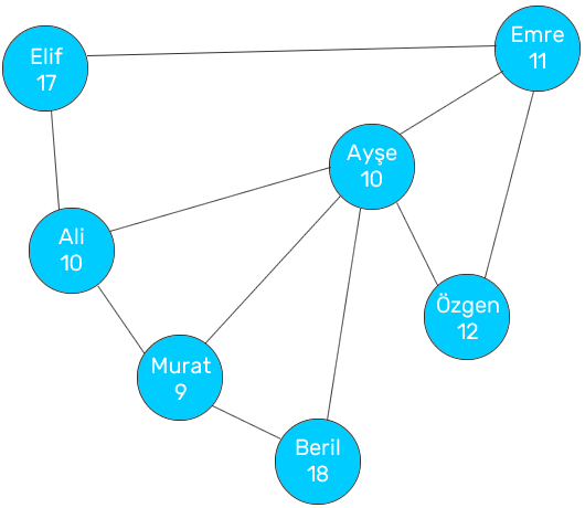 The relationship between 7 students in a book club is shown in the graph. According to this graph, the names and ages of the students are known. The book club has some rules: